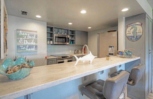 Pour Me a Vacation invites you to relax, reconnect, and soak up the coastal vibes in beautiful Port Aransas. This beachy, breezy condo is the perfect retreat for families, friends, or couples seeking a laid-back escape. With an open layout that effortlessly blends the living, dining, and kitchen areas, your group can easily spend time together—whether you're cooking up a storm, playing games, or lounging on the chic sofas for a movie night on the TV. You'll even be in the golf cart zone, making trips to and from the beach a breeze.