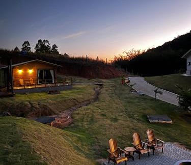 Pousada Vale Das Águias features accommodations in Jaguaruna. This property offers access to a terrace, free private parking, and free Wifi. Guests can make use of the outdoor fireplace or the children's playground, or enjoy views of the garden and inner courtyard. At the guest house, units are equipped with air conditioning, a seating area, a flat-screen TV with streaming services, a kitchen, a dining area, and a private bathroom with a hair dryer, a shower, and free toiletries. A balcony with an outdoor dining area and mountain views is offered in each unit. At the guest house, units include bed linen and towels. During warmer months, you can make use of the barbecue facilities and eat on the private patio. For guests with children, the guest house offers an indoor play area, a baby safety gate, and a kids' club. Guests at Pousada Vale Das Águias can enjoy hiking and walking tours nearby, or make the most of the garden. Humberto Ghizzo Bortoluzzi Airport is 5 miles from the property, and the property offers a paid airport shuttle service.