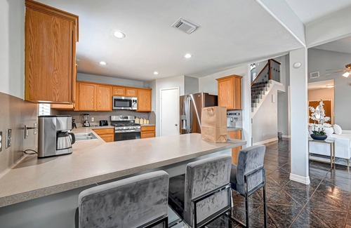☆ Kitchen: Fully stocked with cooking basics, Keurig coffee maker, dining area for 6, breakfast bar for 4