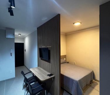 Prédio San Paolo - Bairro Santa Mônica próximo a UFU / Prefeitura / Center Shopping enjoys a location in Uberlândia, 2.1 miles from Rondon Pacheco Theater and 2.3 miles from Uberlandia Bus Station. Each room has a balcony with city views and free Wifi. Accommodation is equipped with air conditioning and features a flat-screen TV with cable channels, a fully equipped kitchen with a dining area, and a private bathroom with a hair dryer. At the apartment complex, each unit has bed linen and towels. Uberlandia Airport is 4.3 miles from the property.