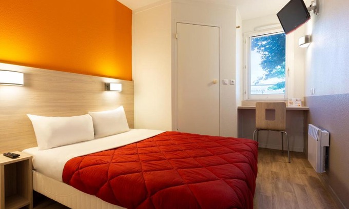Hotel de Nantes Saint Herblain is located in Saint Herblain, 6.2 mi west of Nantes city center. It has 62 rooms with private bathroom, television and free Wi-Fi internet access. A full breakfast is served daily at Hotel de Nantes Saint Herblain. The hotel is a short drive from the local cinemas, bowling alley and restaurants. The reception is open from 6 a.m. to 9 p.m from monday to friday and from 8am to 11am and 5pm to 9pm on saturday and sunday. The hotel provides free private parking and is easily accessible by the N444 and E03 motorways. Nantes SNCF train station and the Nantes-Atlantique Airport are a 15-minute drive away.