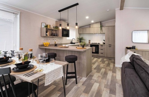 Featuring a variety of 2- and 3-bedroom lodges, each is elegantly furnished and well-appointed with modern amenities. These lodges offer spacious living areas, full kitchens, and cosy bedrooms, along with private outdoor hot tubs, perfect for relaxing evenings under the stars. The interiors blend sumptuous comfort with contemporary style, creating a high-end space that feels like home.