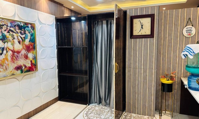 Kick back and relax in this calm, stylish space. AttachedBath and Balcony with private living and dressing Area. Amenities like smart TV , wifi, OTT channels, Refrigerator, ovan are available. Dedicated outdoor induction kitchen with private balcony garden, where you can have good sun bath and city view. walkable distance from Kalighat metro and Temple.