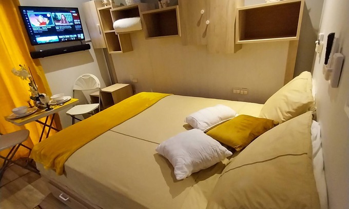 Spend some time at the nearby beach (enjoy the sun loungers!), relax by the pool, or sip a drink in the hot tub of this 269-sq-ft apartment, which also features a garden. As for the great indoors, you can come inside and enjoy the free WiFi, TV, and stereo.