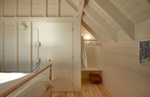 Located on a hilltop at the western tip of Havre Aubert Island, Les Rochers is an architectural rental property made for pleasure-seekers who appreciate refined design as part of a memorable vacation experience. Envisioned by la Shed architecture, and built in 2019, the 3-bedroom house opens up onto to maritime landscape and offers a graphic and embodied vision of the traditional gable roof typology. Atop its hill, the house's 360-degree panorama enriches the space and elevates the experience to spectacular horizons.