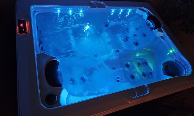 - 1 private Jacuzzi 4 people at home with ambient lights in back patio heated to 37 ° C all year round 24/24
