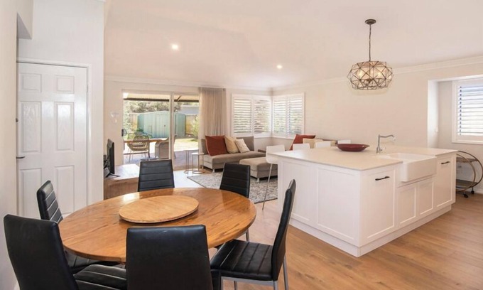 Prevelly Beach House is a renovated home perfect for families, with two living areas and ideally located across the road from the middle of stunning Prevelly Bay. There are two short access paths to the beach, one being a traditional sand and step pathway, the other a hard limestone path. Both lead to the beach and the Beach Walk Track - a hard limestone path that runs the length of the Bay.