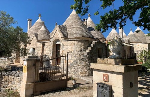Extraordinary view and overlooking the main courtyard for a comfortable and spacious trullo with 4 beds. It consists of a small well-equipped kitchen with a living-dining room, two double bedrooms and a bathroom with a large bathtub.
