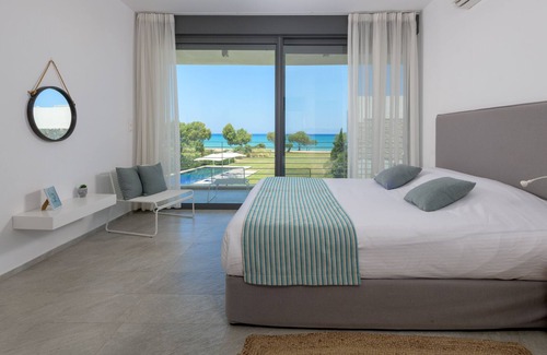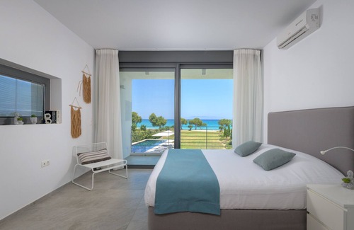 Paradise comes neatly packaged at Renee luxury villa, an impressive beachfront luxury villa with direct access to the beach and with in walking distance from the local taverns, bars and shops. Located just 10 minutes from the airport and 20 min from the sizzling Center of Kremasti, llissos in Rhodes. Villa Renee ensures high level of privacy and tranquility away from noisy traffic or crowded tourist area.