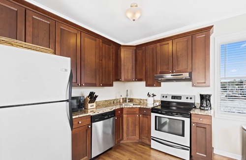 The unit includes a kitchen as well as most cooking basic you might need during your stay. There are granite kitchen counters with stainless steel appliances and Hardwood floors throughout.