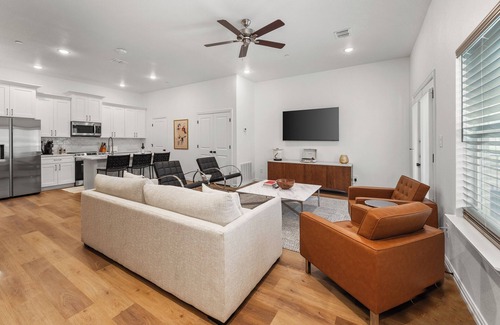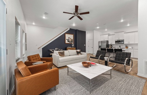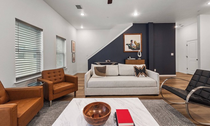 Newly Launched Townhome! Perfectly located steps from Arlington's vibrant Entertainment District, you'll have easy access to AT&T Stadium, Globe Life Field, and the National Medal of Honor Museum. The home features 2 bedrooms, 2.5 baths, and accommodates up to 6 guests. Enjoy a fully equipped kitchen, cozy living spaces, wifi, and a rooftop deck and outdoor seating. The garage fits 2 medium-sized cars. It’s the perfect spot for exploring Arlington while feeling right at home!
