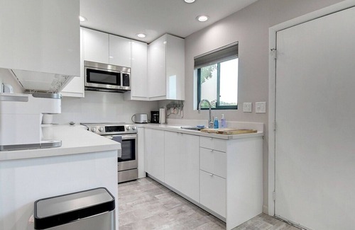 Completely remodeled with modern touches throughout. Open and spacious great room with couch and big screen tv. Dining seating for 4 and a stocked kitchen and coffee bar for those wanting to stay in and eat while traveling. Bedrooms are spacious and feature top of the line beds and bedding. Each bedroom has a TV and guest bedroom offers bunk beds for those traveling with larger groups. Convenient workspace for the business traveler and patio seating to enjoy the AZ weather! A Great deal of thought has went into making this a great space that is functional and comfortable.