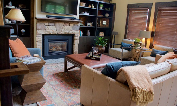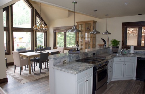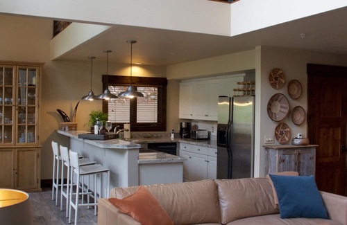 Telemark J easily sleeps 8 guests. There are two king beds, and two sofas which convert to beds. An additional chair and a half converts to a small bed in the master bedroom. This unit offers a fireplace, ski locker, garage parking, radiant in-floor heating, and everything you could possibly need in the well-stocked kitchen.