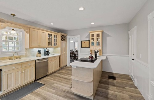 Step outside onto the expansive deck, complete with a gas fire pit and grill. After each stay, the home undergoes professional cleaning, ensuring a fresh and welcoming experience.
