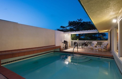 A grill is on your patio. Optional pool lights and pretty lights on your pool cover to make things look cozy and romantic.