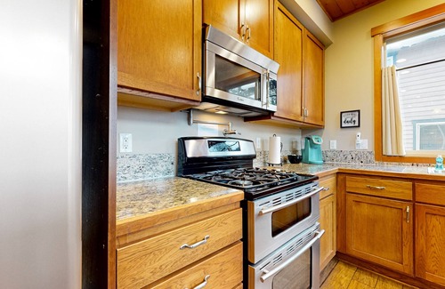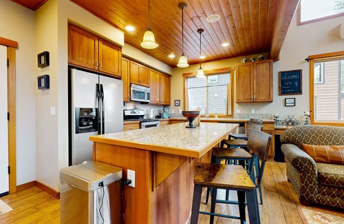 Back at SnowTop Manor, warm up and get cozy in front of the living room's stone fireplace. When hunger arises, the kitchen features a full suite of stainless steel appliances and granite countertops - making cooking a breeze!