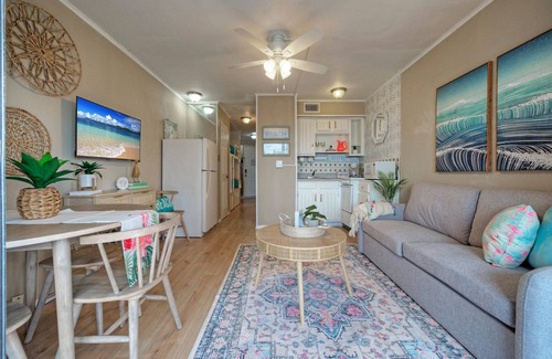 Step inside to find a cozy living area, complete with a TV and a sleeper sofa—perfect for unwinding after a day in the sun. The kitchenette provides all the essentials to prepare quick meals and snacks, while the private balcony off the living room invites you to relax with seating and stunning ocean views.