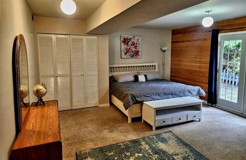 You will have the entire downstairs basement suite to your self, I live upstairs. Enjoy the huge yard, hot tub, pool, fire, creek and more...