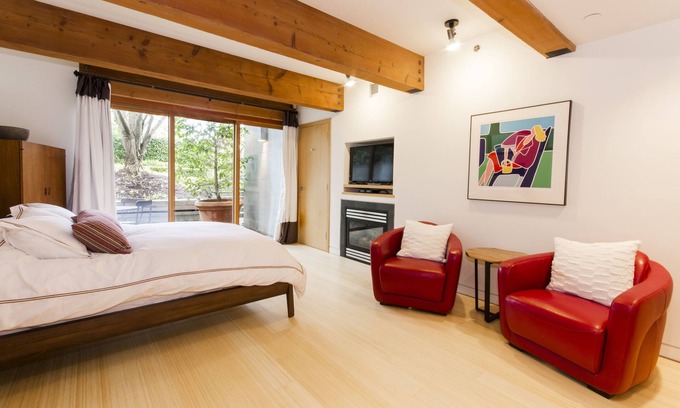 Welcome to your own private oasis in the Southlands area of Vancouver. This beautiful suite includes its own entrance with a patio for morning coffee, a luxurious queen bed with down duvet and crisp linens, a fireplace for cosy evenings, a kitchenette with fridge, microwave, sink, and dishes, and full bathroom.