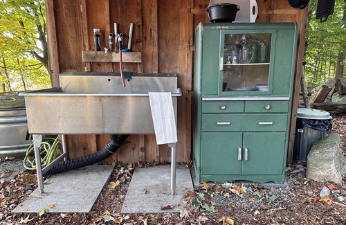 Relax in privacy at Whitetail Cabin. Situated under towering oaks and maples your private spa adventure awaits! Soak in the wood fired stock tank hot tub under the stars in total peace and quiet, melt away your aches and pains in our Basswood sauna or stroll the trails on 340 acres of forests and fields. Wildlife abounds both around camp and on the farm. Whitetail deer, turkeys, coyotes, owls and much more are common sightings.