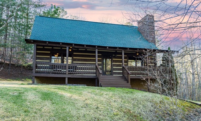 Welcome to Fieldwood, a beautiful oasis tucked away in the foothills of the North Georgia Mountains. Escape to the quiet countryside to unwind and unplug from the chaos of daily life at your very own private retreat. This gorgeous 3 bedroom, 2 bath cabin is surrounded by natural views and the peaceful quiet of the great outdoors. Enjoy your morning coffee on the large covered porch, or grab a good book and relax as you sway on the porch swing.