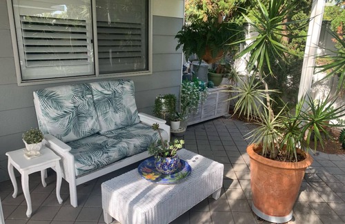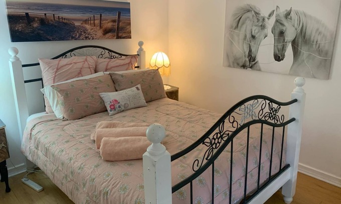 Enjoy a stylish experience at this centrally located fully self contained guesthouse that's totally private & separate from our home ,enjoy the peace and quiet with a beautiful outside area with gas bbq, free parking,a beautiful comfortable bed with all the extras , linen, towels, coffee machine, separate lounge, 2 reverse cycle split system airconditioning ,smart tv with Netflix,Stan, Bathroom and toilet, with-complimentary bikes to use to ride to town 1.2 km , inc helmets . Cosy and quiet.
