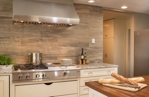 Our dream kitchen lives at Shangri-Lodge. Bring your favorite recipe (or try one of ours) and let the kitchen be your canvas: it has a 48" 4-burner gas stove with griddle, a professional double fridge/freezer, quartz countertops, and cabinets fully stocked for chefs with all utensils and small appliances.