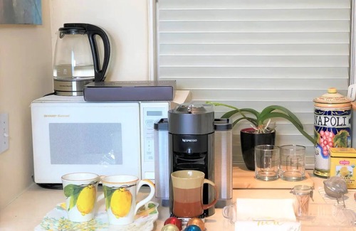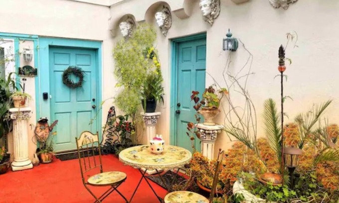 This private suite with private entrance, bathroom, high speed internet & living room is the part of 1940's magical Mediterranean house.