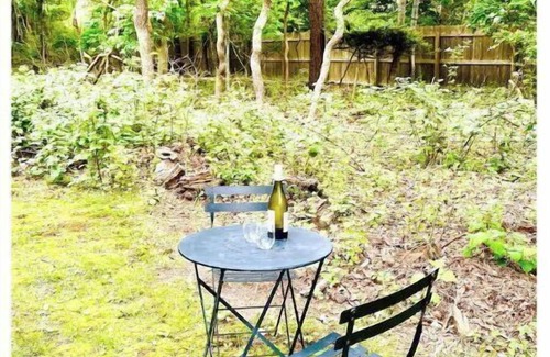 Private, tranquil Studio Cottage—located between East Hampton and Amagansett villages, 1 mile to Ocean beaches. High ceilings. Queen & double Aerobed, Kitchenette, Full Bath. Ride your bike to the villages or beaches. Private entrance, parking, max. two guests, separate from the main house, at the end of the private lane.