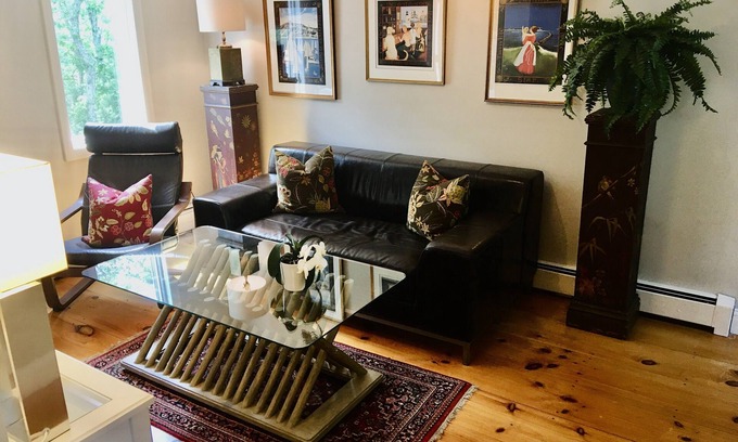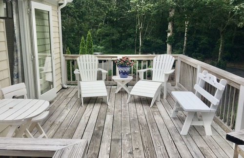 Town of Barnstable: Cape Cod’s hub. Three-room suite (bedroom, TV/media room, office, and a full bathroom) upstairs, in a renovated home. The suite has a private large deck, and a luxurious outdoor shower. There is a mini-fridge, a microwave, and a coffeemaker. The property sits on a hill and is over one acre of private grounds. It is conveniently located 10 minutes from Hyannis, shops, and restaurants, and also from both the south and north side beaches.