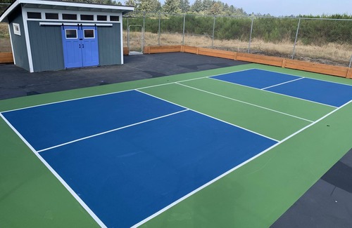 This Northwest style home has been completely remodeled with beautiful details. It has 4 bedrooms, 2 with Kings, 1 bedroom with 2 queens. All the beds are new. The 4th bedroom has three twins. The library has a day bed that sleeps one. There are 3 full baths including a stunning master bath. The gourmet kitchen has all you need for cooking. Laundry has new washer and dryer. The home has a open floor plan with the great room open to the kitchen. The view looks onto the swimming pool. Looking west from the pool you can see the firepit and new regulation size Pickleball Court. There is a new gas grill outside on the deck. The Great room has a large wood burning fireplace and a 60" flat screen TV. The Pool is heated in the summer season (June 1-September 5) For an additional fee it can be heated some other times of the year depending on outdoor temperatures. You can check with the owner to see what the cost is to heat the pool during the off season. The outdoor Sauna is open year round.