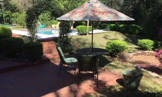 Our home is located on a quiet neighborhood in the middle of downtown Midtown Tallahassee. This separate guest quarters has its own patio which overlooks our swimming pool. We are 3 miles from FSU Campus and only 1/4 mile from Tallahassee Memorial Hospital. We are less than 1 mile from Governors Square Mall and just minutes from great restaurants and shopping. Your room has a queen size bed, private bathroom, along with a mini-fridge for drinks along with a Keurig pot for coffee and tea. Our whole house has a soft water system which also removes chlorine. We are Superhosts with Air*bnb and want to extend that level of service to you through HomeAway/VRBO.