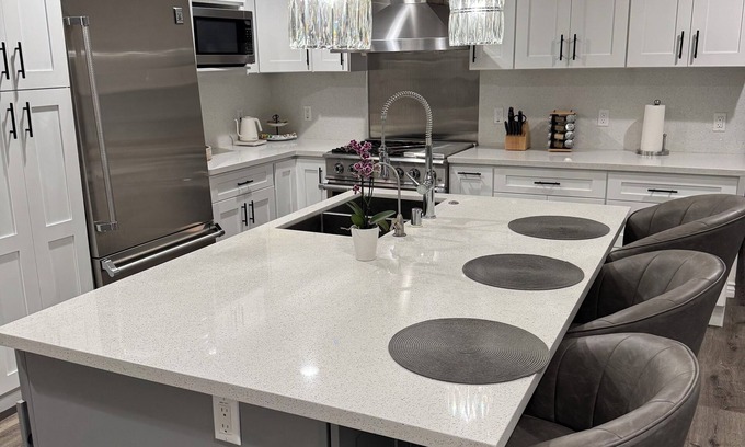 •Fully equipped kitchen with cookware, utensils, microwave, stove, oven, fridge, dishwasher, filtered water and more