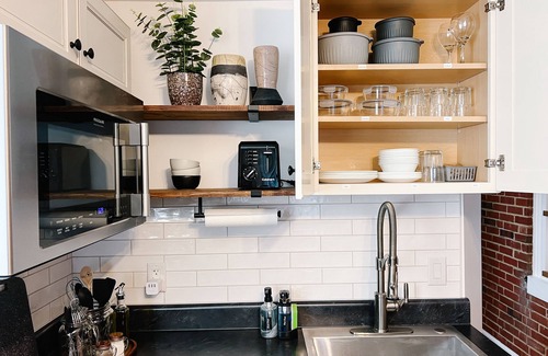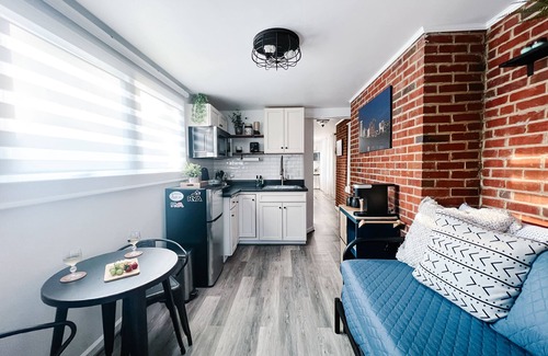 The space: One bedroom with a queen-sized bed, soft linens, smart TV, as well as a dedicated work space. One bathroom equipped with fresh towels, toiletries, and a hairdryer. Open concept kitchen living room with a mini-fridge with freezer, 2-burner induction cooktop, wall oven/microwave combo, toaster, coffee maker, and electric kettle, along with all utensils, dishes, and cookware. Living room with couch/daybed that pulls out to create a double twin bed and a smart TV. Laundry space with washer and dryer.