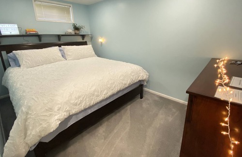 This modest abode has a new kitchen, includes king bed and futon, private parking, high speed WIFI, small coffee/tea bar & prepackaged snack.