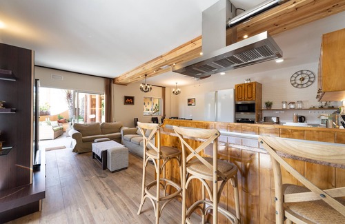 Villa La Atlántida consists of a comfortable and luxurious home with up to four large bedrooms, divided into two areas, with double beds. Large and equipped kitchen with dining area and living area, with internet access. We also have the latest technologies with high quality WIFI to navigate well through the Internet and with Smart TV and satellite channels.