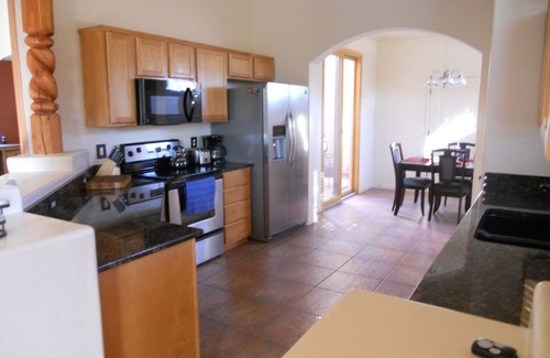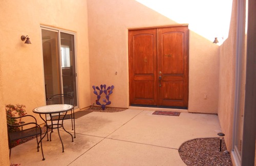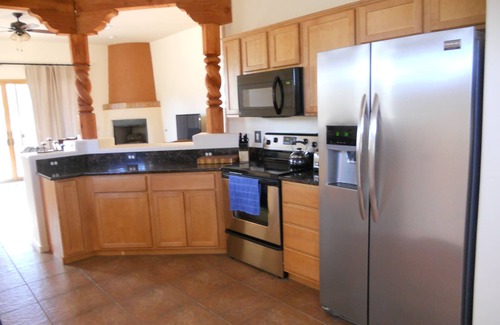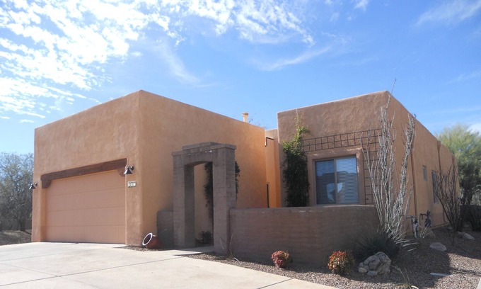 This is an awesome vacation home that you will LOVE! It is a free standing home with comfortable furnishings and well stocked supplies. Enjoy this special community from our beautiful home in Barrio De Tubac, a small community within walking distance of the artist village in Tubac, and less than a mile from the Tubac Golf Resort. As frequent VRBO guests ourselves, we know what we enjoy when staying in other’s homes, a designer home, geared towards comfort, with well-stocked supplies. We have picked out every item, from soft sheets, to bathrobes, to smart TVs that allow you to access your accounts with Netflix, Hulu, Amazon, etc., with your comfort and enjoyment in mind. (No cable TV) You will love our 2 bedroom, 2 bath home with its’ 10 foot ceilings, gas kiva fireplace, surround sound, jetted tub, walk in shower, well stocked kitchen with granite countertops, stainless steel appliances, private court yard, and back patio with comfortable seating and beautiful sunset views. Of course high speed wireless Internet is also provided, as well as two bikes, helmets and lock.