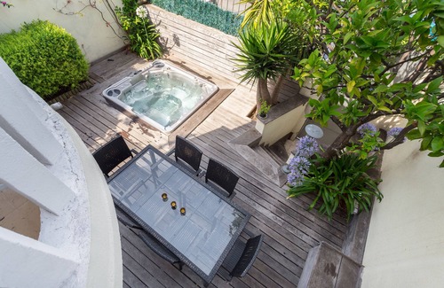 A 3 bedroom semi-detached house in a quiet residential estate, but within walking distance to all the life and amenities of Nice Port. Features include an outside space with a jacuzzi and space to eat outside and BBQ. A full flat sunbathing terrace on the roof with 8 sun loungers. One parking space is available within a secure sliding gate.