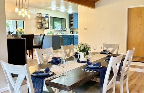 Private country house at a 25 acre vineyard where you can experience stunning views of the rolling gold country hills, vineyards and seasonal foliage. A place to escape from the hustles and bustles of busy life. This newly remodeled house is nestled between 9 acres of estate vineyard and a boutique wine tasting room. This country house features an open floor with a very spacious living room perfect for a gathering of family and friends. 3 bedrooms and 2 bathrooms, a stocked kitchen and plenty of outdoor areas. Pet friendly property. Enjoy breathing taking views and amazing sunsets from the deck while sipping a glass of award winning wines from the estate. One of our past guests, Amy said “this is one of the best places we have stayed in our lifetimes…we even watched a meteor show!”