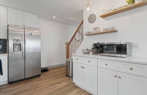 The house has been designed to make your stay comfortable and enjoyable, with a special focus on maximizing the beautiful lake views. The first floor is open and filled with natural light, thanks to large windows overlooking the water. The kitchen is fully stocked and is open to the rest of the floor so you don't have to be apart from your group while preparing your meals. There is a dining room with seating for 6, and the cozy living room has an electric fireplace to cuddle up by on a rainy day and read a book.