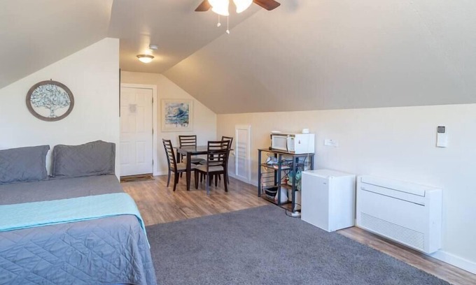Recently remodeled private in-law suite just blocks from downtown, the foothills, and Table Rock park. Literally 1 block from an entrance to Boise's beautiful foothills! Enjoy a comfortable stay in a suite that includes a queen bed, sleeper sofa, private bathroom, TV, guest wifi, fridge, microwave, coffee maker, private parking spot and more. Open the window and enjoy the Outlaw Field summer concert series. Or take a stroll into the heart of downtown through the beautiful east end neighborhood.