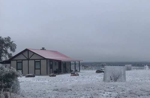 Come and enjoy the beautiful scenery and tranquility of the Maner Hacienda. You will experience a wonderful encounter with the wildlife such as the white tail deer or maybe even some Rio Grande turkeys. The Maner Hacienda is located in Doss, TX on a hilltop with an awesome view and are flavored with a Southwest Texas charm and are topped off with Hill Country beauty and hospitality. Just a 20 minute drive to beautiful downtown Main Street in Fredericksburg. If you are looking to get away from everything this is the place for you... Romantic with a fireplace, charcoal grill, full kitchen and a lot of peace and quite. Sit on the front porch and watch the wildlife and enjoy the beautiful views