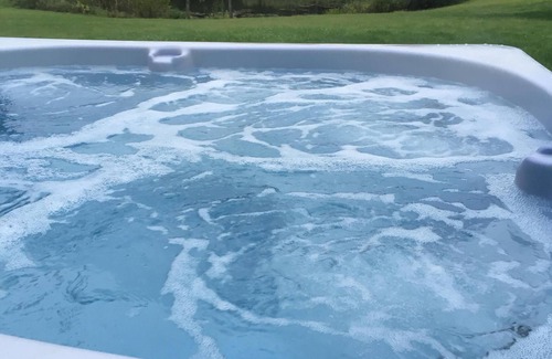 Modern Elk Mountain Estate Chalet sleeps 18-20 comfortably. 2 hours or so from NYC, NJ and Philadelphia. Come experience Summer fun and Amazing Fall Foliage!!! 10 min from Elk Mountain Ski Resort. Close to Rail Trail and State Park. 6 bedrooms and 4 1/2 baths. Our Estate Chalet features beautiful natural views and overlooks a large nature pond. Perfect for getting away and unwinding. Our Chalet is a high efficiency home with radiant heated floors for warmth and 5 zones cooling system for Summer comfort. Gourmet kitchen and great room with floor to ceiling windows and real stone fireplace. Hot tub on rear patio overlooks nature and night skies for star gazing with a glass of wine and loved ones. WIFI provided. Many nature trails on site and only 3 miles from Clifford Community Park for Pickle Ball, mile long walking/biking paths, baseball, tennis, basketball and awesome well maintained kids' playground, as well as a short drive to entrance to D and H Rail Trail for bike riding and hiking for all ages. Located just 8 minutes from Elk Mountain Ski Resort for best skiing on East Coast! Creek for fishing, swimming and tubing. Chalet is part of a larger estate property featuring a main Manor house that sleeps up to 25 and a separate listing. Both homes are completely private from each other and may be rented separately or together for larger groups such as family reunions, retreats, weddings and special events. 5 wonderful golf courses within a short ride. Seasonal polo on grounds. Fishing on grounds. Stocked creek. Home is very private, surrounded by trees and nature located down in a glen by a pond and creek. Wild berries grow everywhere for picking. All year-round fun!!! Lakes, state parks, rafting, ski slopes, casino, aquarium, Happy Trails horseback riding, animal parks, water parks, etc nearby. Chalet has 6 bedrooms and 4 1/2 baths, with private queen master suite. Chalet has a game room with couches and flat screen TV as well as Ping Pong table. This level opens to expansive side yard with horseshoe pit and seating. Large yard areas all around the property for outside games and group activities. Creekside picnic area. Gas firepit and wood firepit on rear deck and patio. Large grill on rear deck with seating, which overlooks the rear lawn, pond and backside of Elk Mountain. Linens and bath towels provided. Fully stocked kitchen. Hot tub. WIFI. Landline phone provided as a courtesy. Grocery store, pizza, sandwiches, wine and beer shop and Dollar Store for necessities all within 3-5 miles of our home. Several local catering options for meal delivery upon request. Perfect for family gatherings, birthday celebrations, reunions, retreats, ski season, romantic or private getaways.