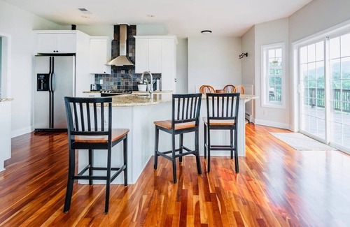 Enjoy the soaring views of the surrounding hills and neighboring horse farms and wildlife. You can walk to Candlewood Lake or take a popular hiking trail to the local winery. The space has a country modern style with many accommodating furnishings including beds for 12; all with fresh cozy sheets, pillows and bedding. In addition, there are 2 kitchens and 3 living spaces.
