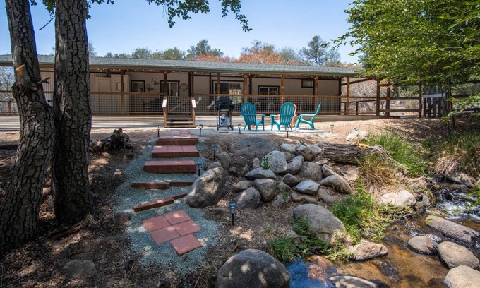 Welcome to Lone Wolf Outpost’s Creekside Retreat — a newly remodeled private cabin tucked beside a year-round flowing creek, just minutes from Springville, Lake Success, and Sequoia National Forest. Whether you’re attending a wedding, hiking wild trails, or simply craving stillness, this nature-based escape blends rustic charm with creature comforts in a truly one-of-a-kind setting.