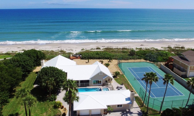 This is UNSURPASSED Vacation Experience UNMATCHED BY ANY OTHER HOTEL, RESORT or VACATION HOME – stunning, magnificent, luxury and exquisite private resort with 200 ft. of Atlantic Ocean frontage, privacy provided by 2 acres of prime beachfront while in the heart of the Space Coast and in proximity to all amenities, with YOUR OWN PRIVATE TENNIS/PICKLEBALL COURT (with US Open colors - blue and green), pool and spa directly on the Atlantic Ocean!