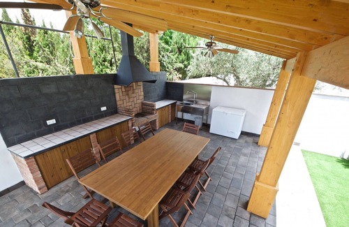 Villa Vora Mar has two outstanding characteristics. The first is it is just 50 m from Cap Roig, the best beach in the area. The second is it has undergone a bespoke redevelopment of the garden to create a designer 'outside space'. It features a fully equipped summer kitchen with barbecue and large spacious dining area, a self-cleaning pool and a raised sundeck area with fitted straw sun-canopies. Perfect for enjoying long sunny days. The villa itself is spacious and very private, with four bedrooms, two bathrooms, a fully equipped independent kitchen, a living and dining area leading onto a quaint balcony overlooking the garden. There is off street parking, air-con in the living area, fans in all of the bedrooms, a separate utilities room, free Wi-Fi and all in all, if you are a sun lover and enjoy being outdoors, this is a perfect choice as a holiday home, beside the beach and with wonderful outdoor facilities.