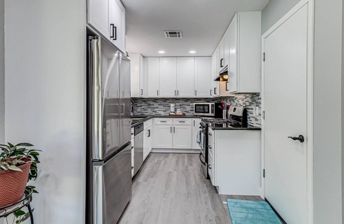 Inside you will find an open floor plan with room for all to enjoy. The living room is set with a plush sofa, there you can unwind and watch your favorite show from the Smart TV. Head to the kitchen for a snack, where you will find granite countertops, and stainless steel appliances. Here you can prepare a gourmet meal for your family or make a refreshing glass of tea. The comforts of home can be found in each bedroom with fresh linens, fluffy pillows, and the master has a TV for late night viewing. The primary bedroom is set with a king bed. The other 3 bedrooms have plush Queen size beds. As an added bonus a washer and dryer can be found in the unit to freshen up any clothes during your vacation.