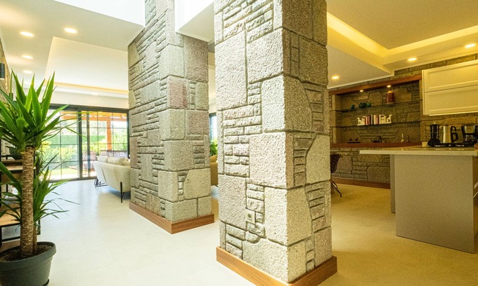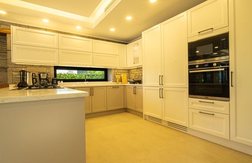The modern designed pool and surrounding contemporary terrace invite you to take a cool dip and recline on the sunbeds while soaking up the warm, Turkish sunshine. It’s an ideal spot to relax and unwind. There is a stylish BBQ adjacent with dining furniture under the attractive covered terrace - perfect for cooking alfresco meals to enjoy.