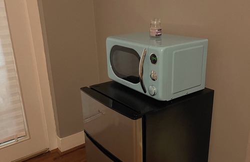 A quiet bedroom, full nice bedroom and additional room equipped with fridge, microwave, coffee machine toaster and are to enjoy your meal. All private and separated from the rest of the house.